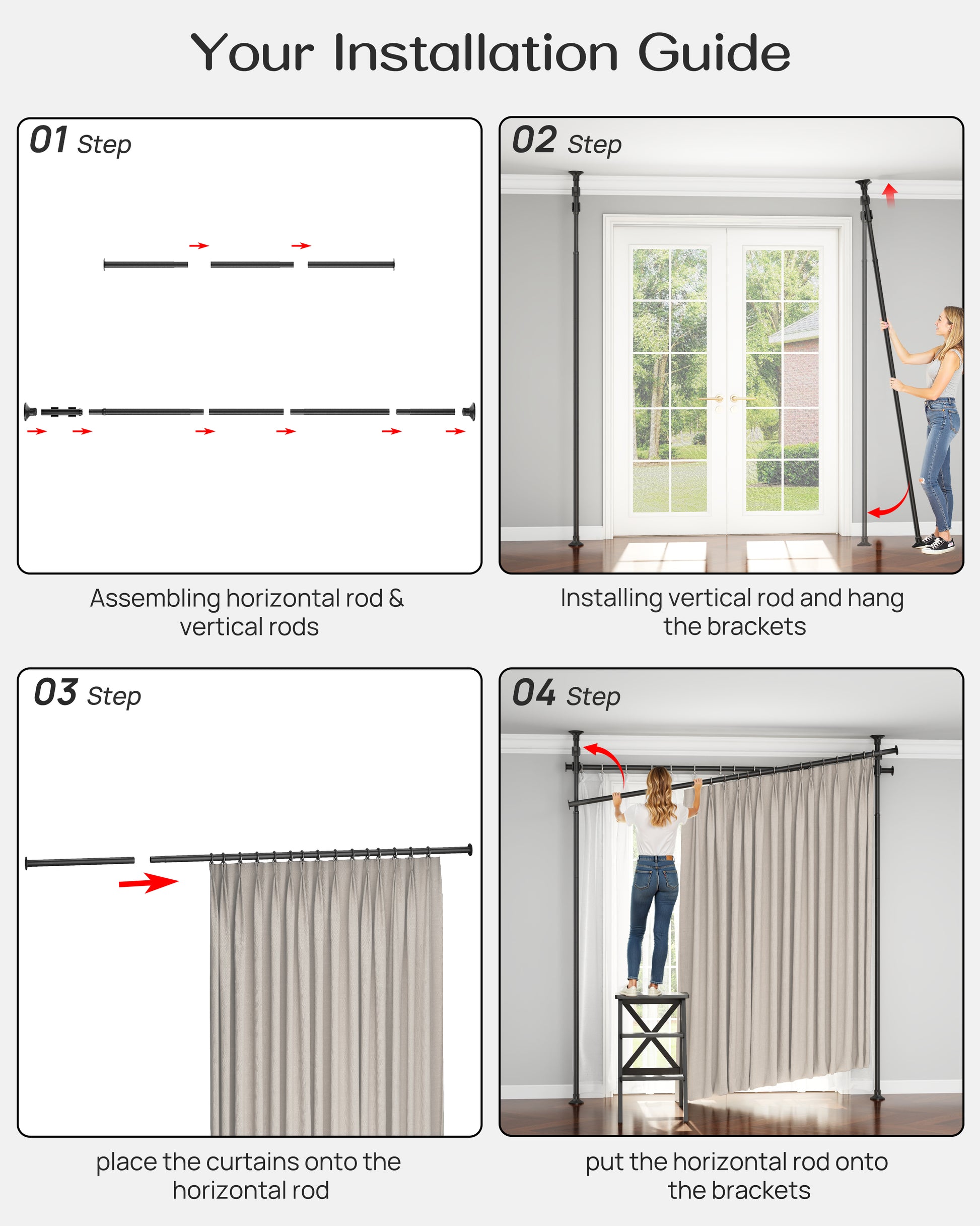 【No-Drill & No Tools】 We’ve solved the wall-damage dilemma. The window treatment rods pressure-mounted design requires no drilling or tools, leaving walls untouched. Highly recommended for renters, dorm residents, newly renovated homes, and DIY enthusiasts who love easy home upgrades.
